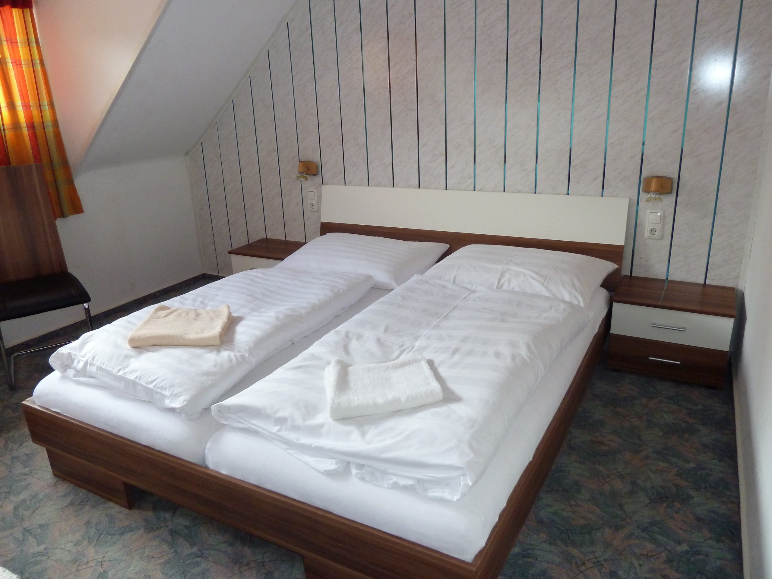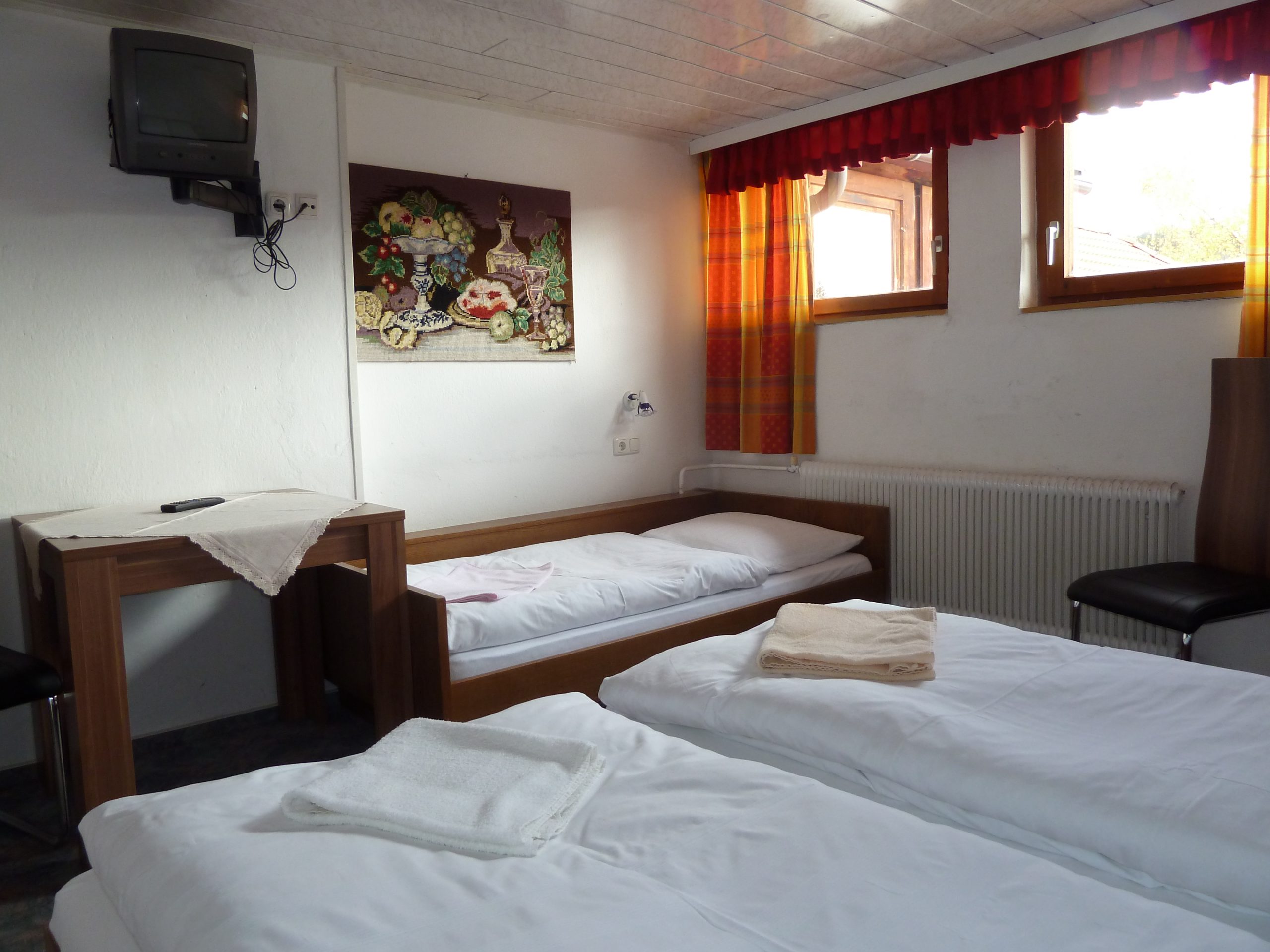 Třílůžkový pokoj ve 2. patře hlavní budovy penzionu Royer – Pois.