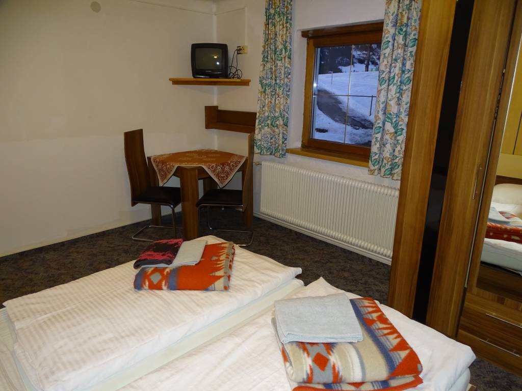 Z balkonu a balkonových dveří hlavní místnosti budete mít výhled na nedalekou rodinnou sjezdovku a vleky Drachenlift. Z okna naproti dvoulůžku a obou oken vedlejší místnosti se pak budete dívat směrem na vrcholy uskupení Dachstein.