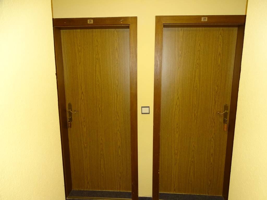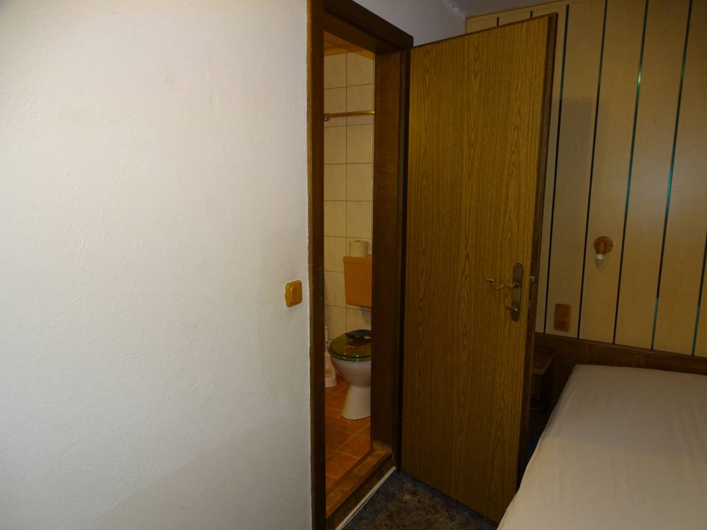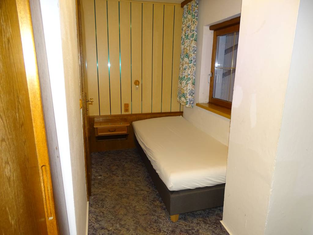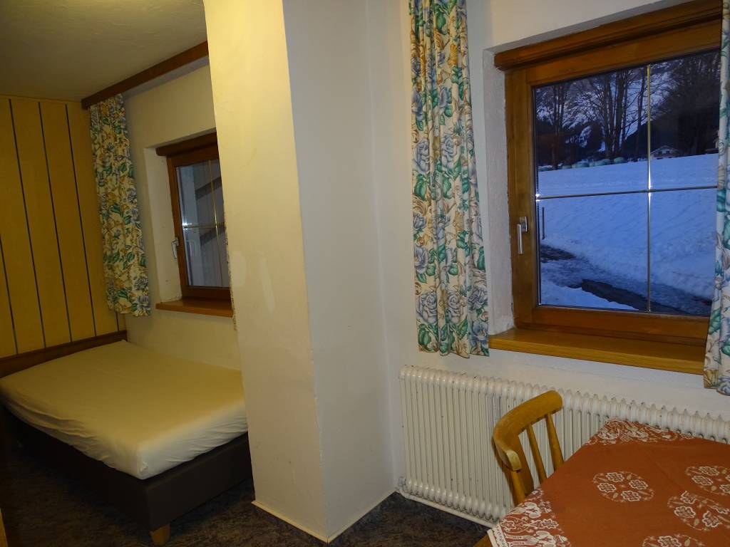Ve vedlejší menší místnosti se dvěma okny je k dispozici další samostatné lůžko a také další stůl. Je odtud také přístup do koupelny, oddělené dveřmi.