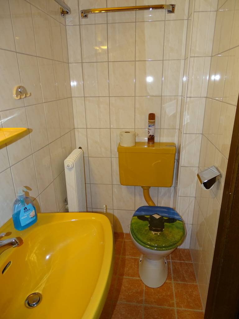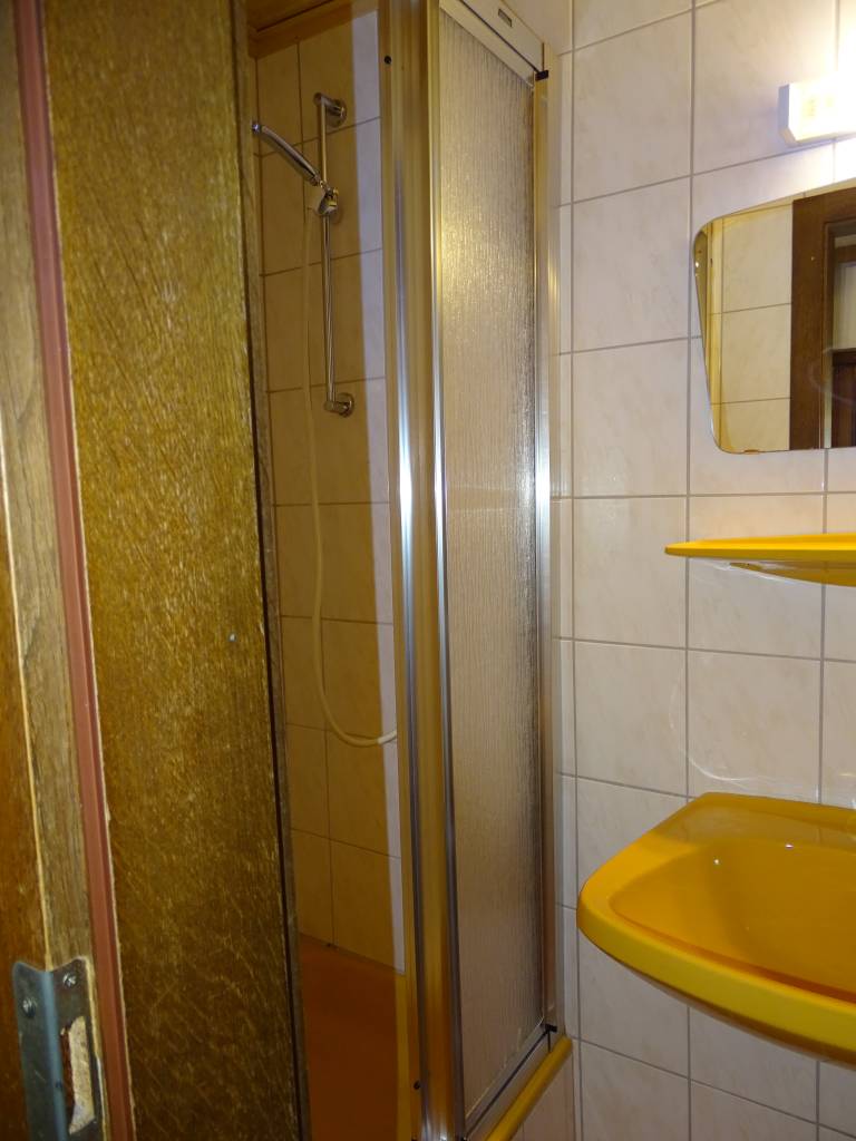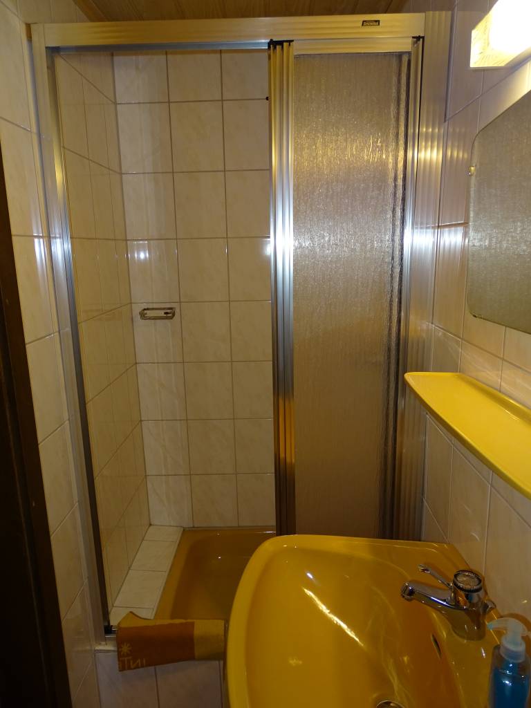 Sprcha, WC a umyvadlo jdou umístěny ve společné malé místnosti.